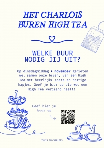 De bakkers van de bakworkshop zorgen op dinsdag 4 november voor heerlijke zoete en hartige hapjes tijdens het grote Charlois High Tea. Hiervoor kunnen buren elkaar opgeven. Dus ken jij een buur uit Charlois die wel een High Tea heeft verdiend? Geef je buur hier op. Er is beperkt plek, dus vol=vol.